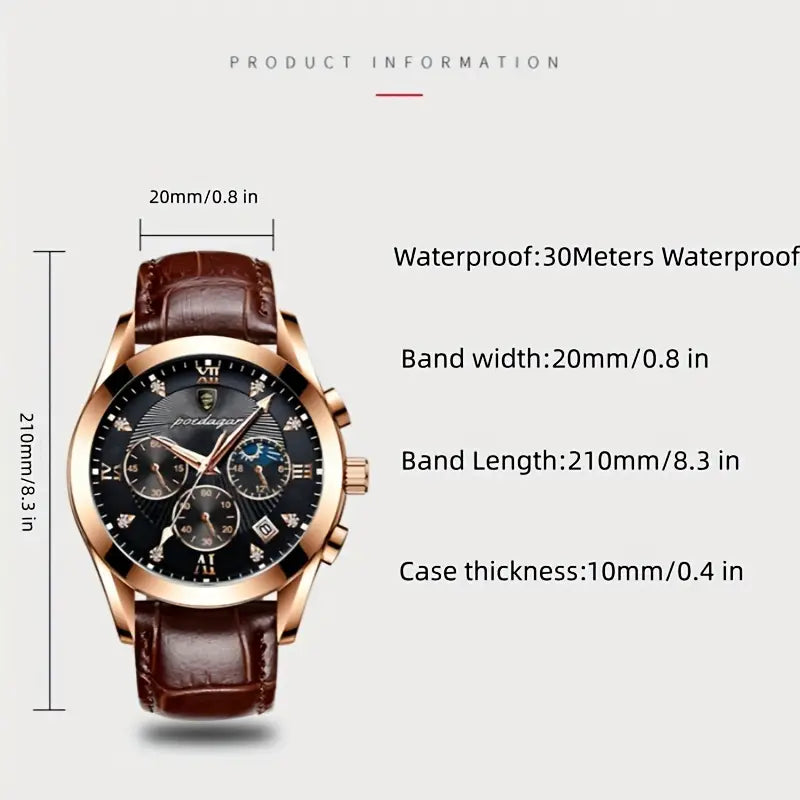 Elegante Herren-Armbanduhr mit präzisem Quarzwerk, Datumsanzeige & IPX8-Zertifizierung
