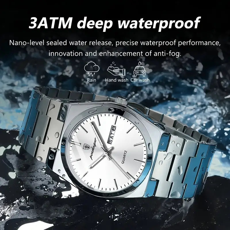 Diese hochwertige Quarzuhr ist mehr als nur ein funktionales Accessoire – sie ist ein stilvolles Statement am Handgelenk. Das klare, weiße Zifferblatt trifft auf ein gebürstetes Edelstahlgehäuse und ein komfortables Metallarmband. Ob im Büro, beim Ausgehen oder im Alltag – diese Uhr passt immer.