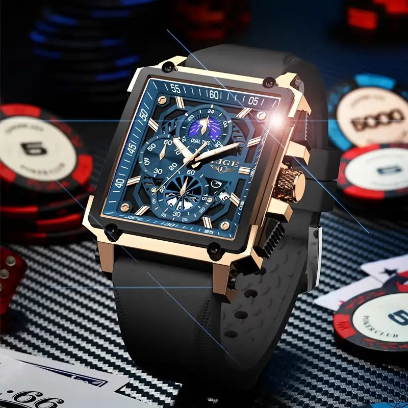 Herren-Quarzuhr mit Mondphasenanzeige – Elegante Uhr mit goldenem oder silbernem Design & IP68 Wasserschutz