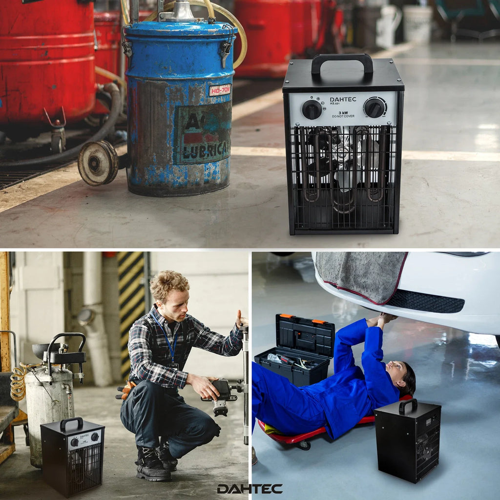 Elektrischer 3000 Watt Heizlüfter 2 Heizstufen schwarzes Gehäuse. Thermostat.