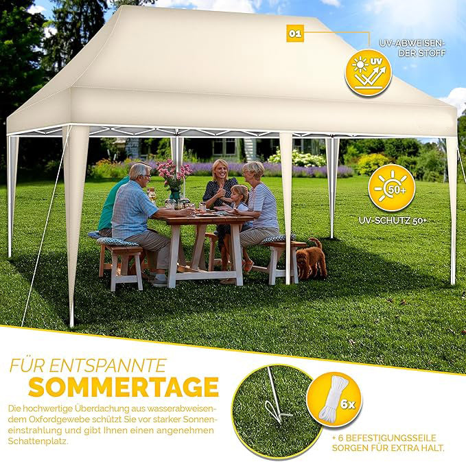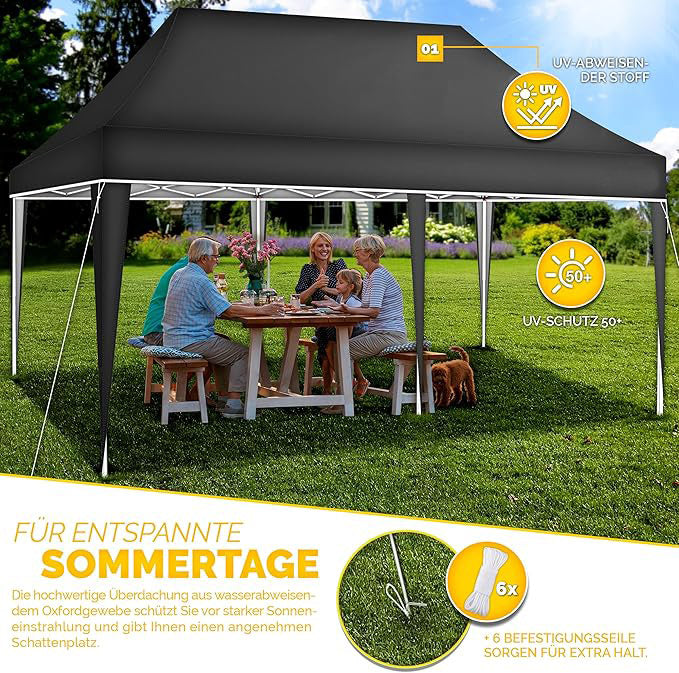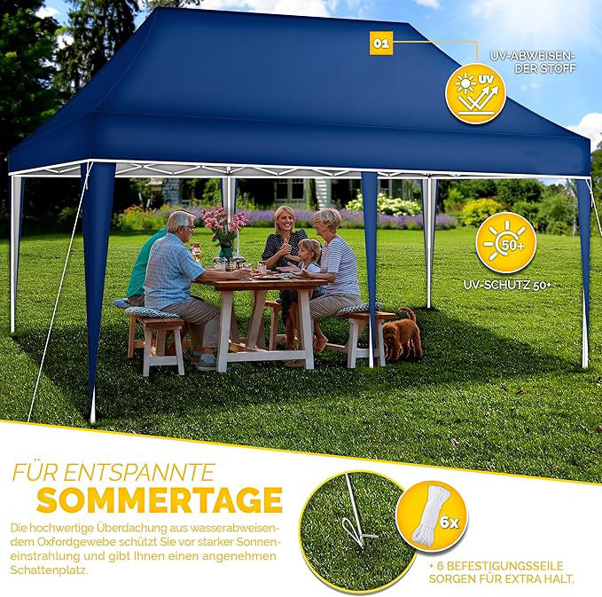 Faltpavillon wasserdicht. Pop Up. Ohne Seitenteile. 3x6 Meter. Gartenzelt. Partyzelt. UV50+ Schutz. Einfaches Faltsystem.