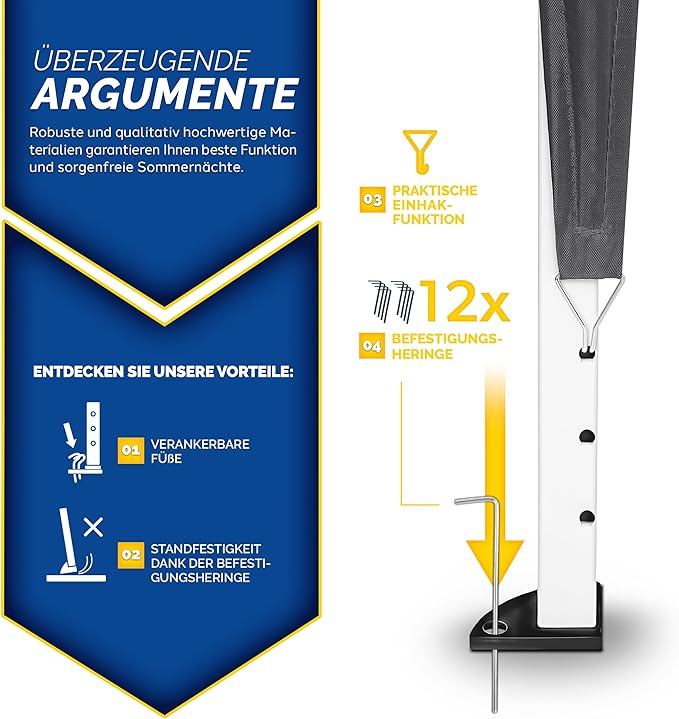 - 12x Erdspieße zur sicheren Verankerung
