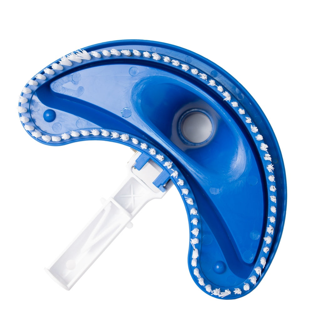 Der Bodensauger im Halbmond Design ist eine praktische Lösung für die Reinigung von Rund- und Ovalbecken. Mit der halbmondförmigen Saugfläche können Sie auch schwer zugängliche Ecken Ihres Pools erreichen. Die Unterseite des Bodensaugers ist mit mehreren Bürstenreihen ausgestattet, um eine optimale Reinigung zu gewährleisten. Um den Bodensauger zu verwenden, müssen Sie eine handelsübliche Telestange und einen Schwimmschlauch mit einem Durchmesser von 32 mm oder 38 mm auf den Sauger stecken und diesen dann mit der Sauganschlussplatte Ihres Skimmers verbinden. Bei laufender Umwälzpumpe können Sie dann mit der Reinigung Ihres Beckens beginnen.