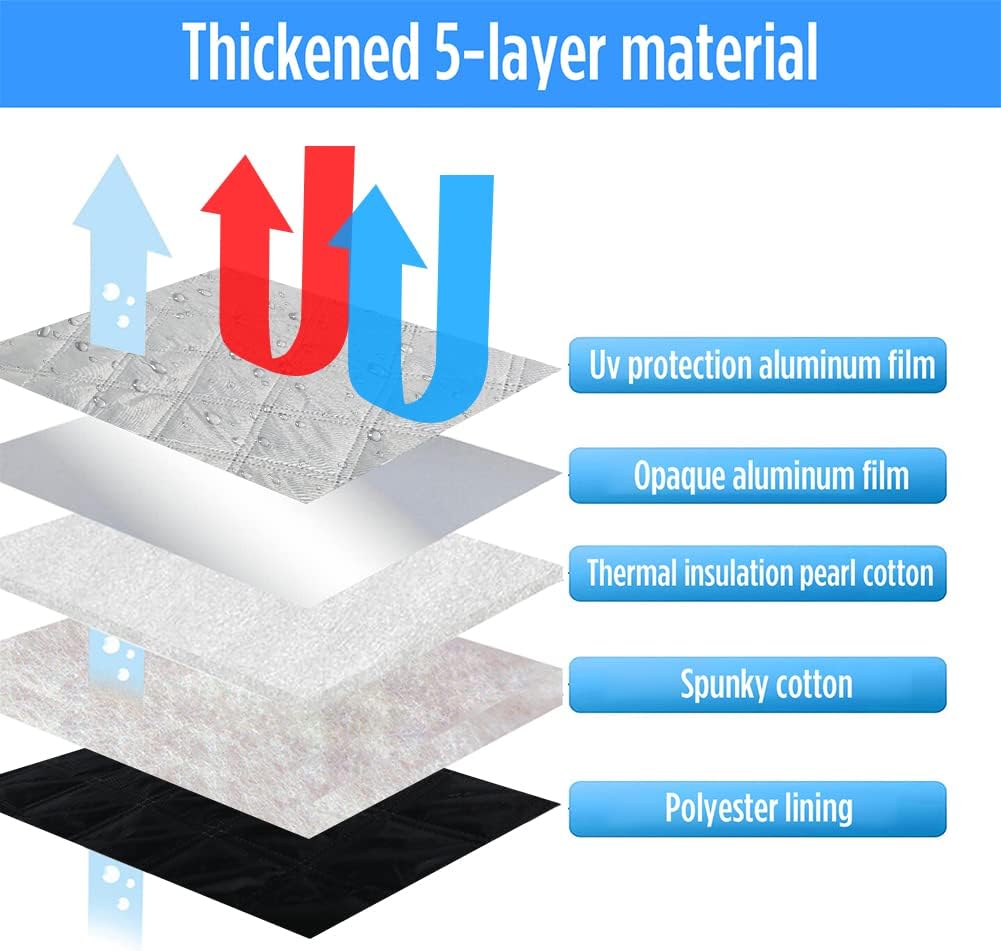 Hochwertige Materialien: Die Thermomatten bestehen aus robuster Aluminiumfolie mit versilberter Oberfläche. Diese reflektiert Sonnenlicht zuverlässig, blockt unerwünschte Blicke und schützt so Ihre Privatsphäre. Gleichzeitig sorgt die starke Licht- und Wärmereflexion für angenehme Temperaturen im Innenraum und verlängert die Lebensdauer Ihrer Fahrzeugausstattung.
